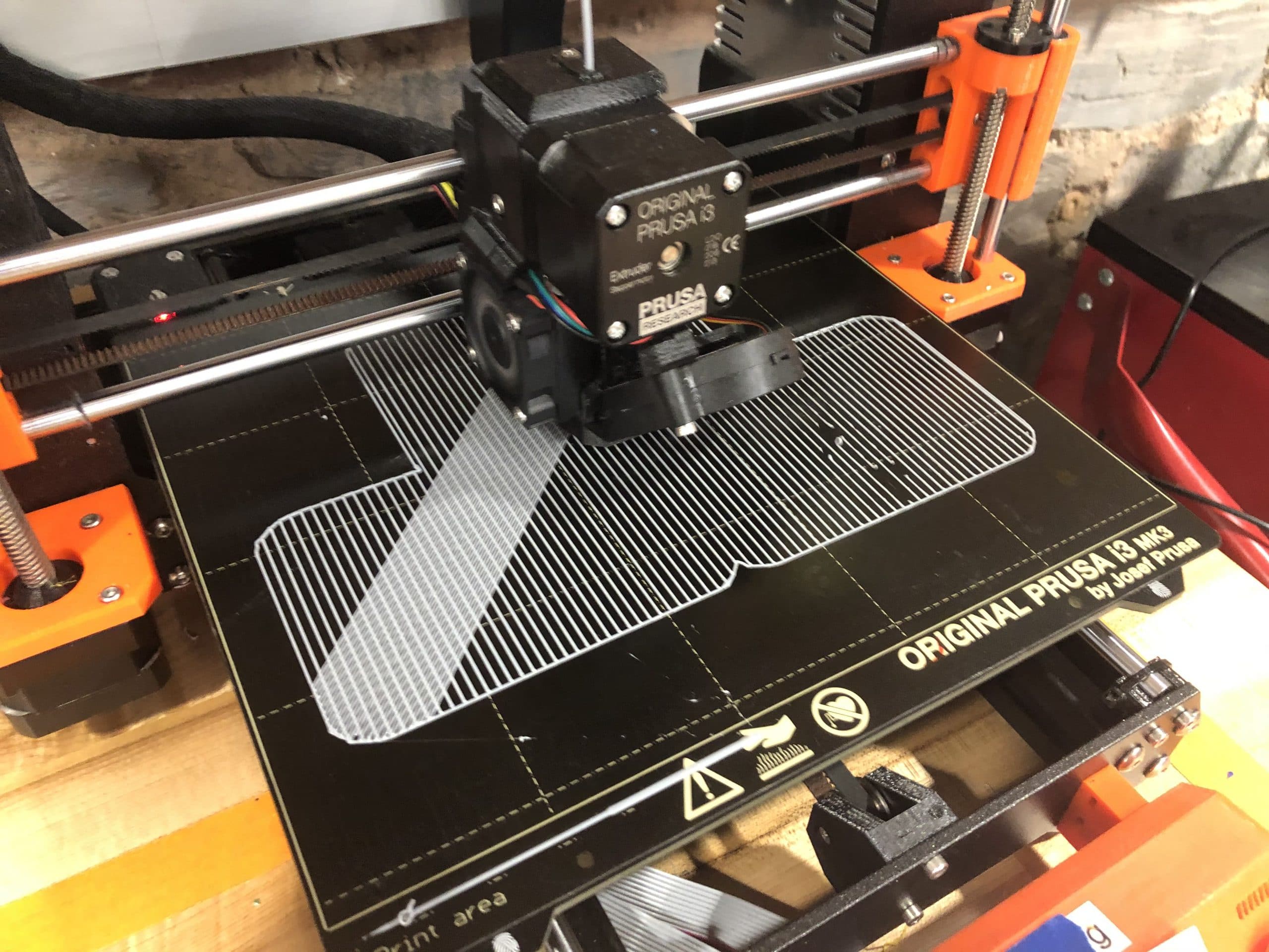 - I prototyped this version at original scale on a Prusa i3 several times. The first attempt resulted in a failed print due to the lack of support scaffolds for unsupported (overhanging) features (printed in grey plastic). In the follow-up print where this problem was addressed, I discovered that a number of dimensions were significantly skewed (more than I would expect from natural part shrinkage). A quick glance at the printer default settings revealed the problem: 20% Fill, 1mm Shell, 0.1mm Layers, 35mm/s extrusion rate, and 0.8 mm Top/Bottom.