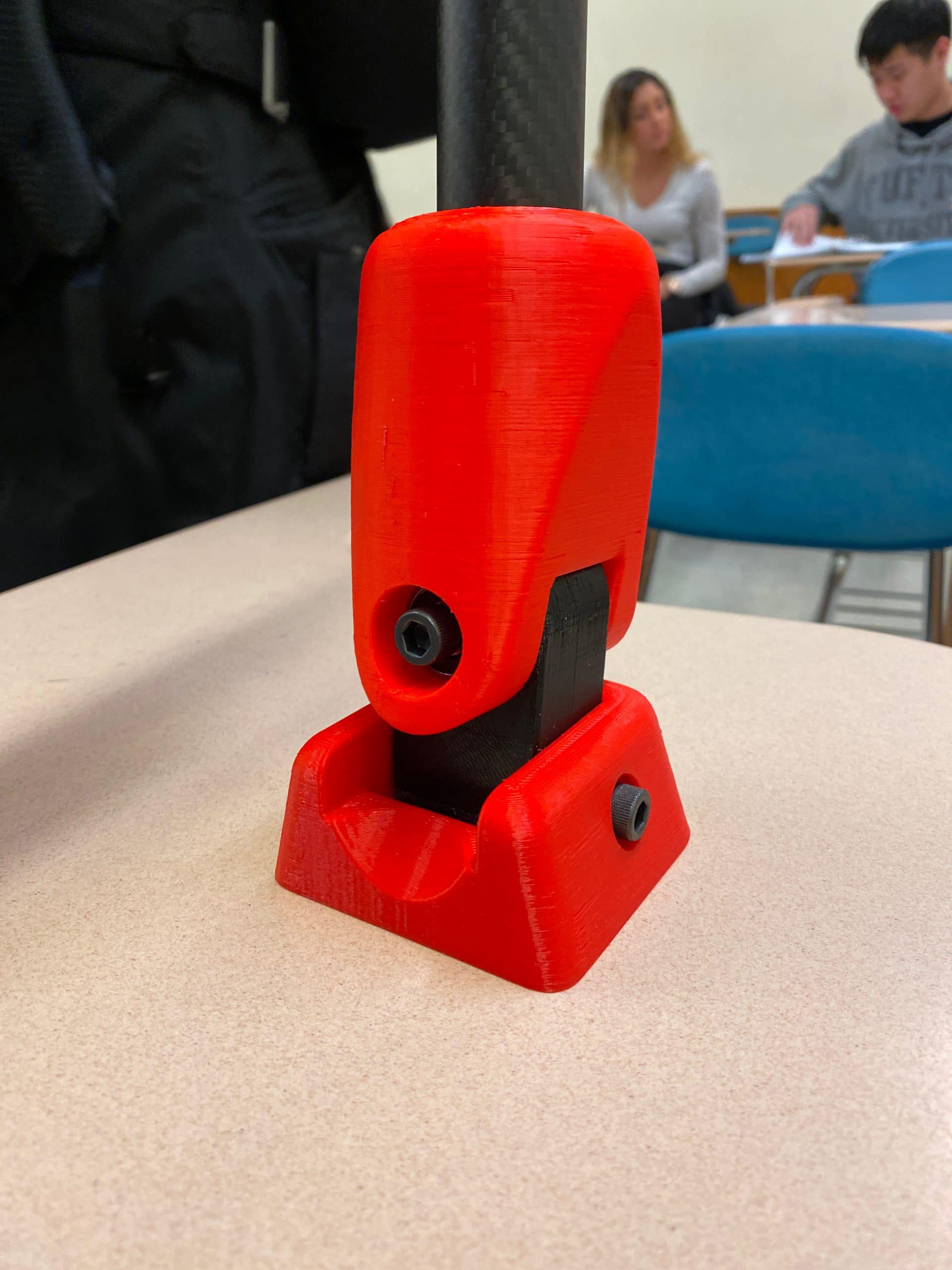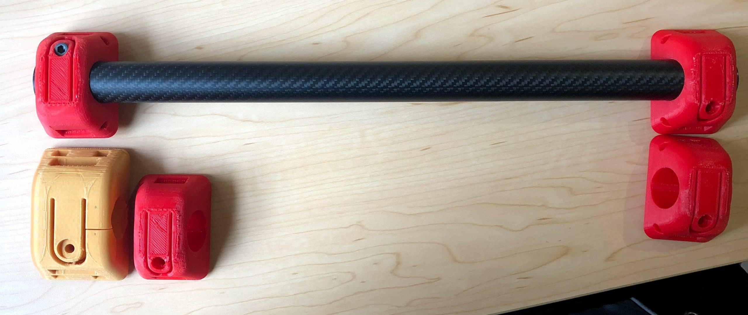 - Manufacture of the “joints” by 3D printing, rendered as CNC 6061-T6.\r\nStronger as a single part with two screws than two parts with six screws. Did not separate the “pinch” clamping of the tubes – review later when more data is available.