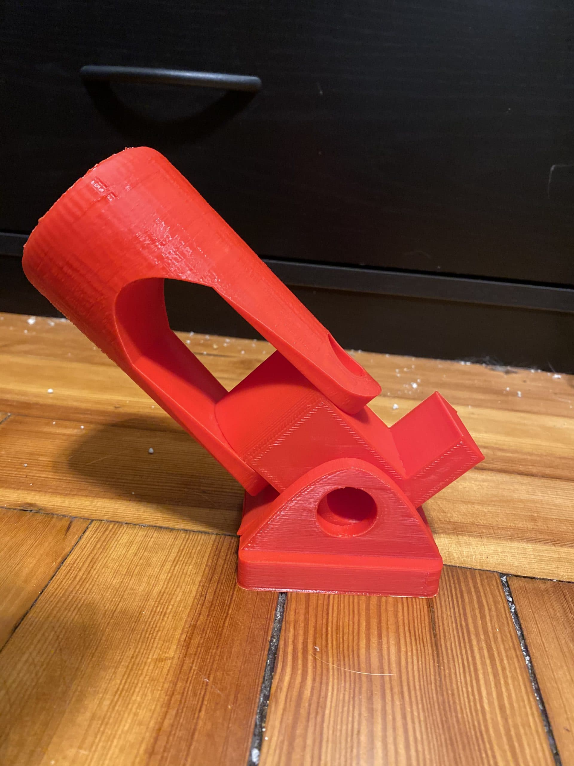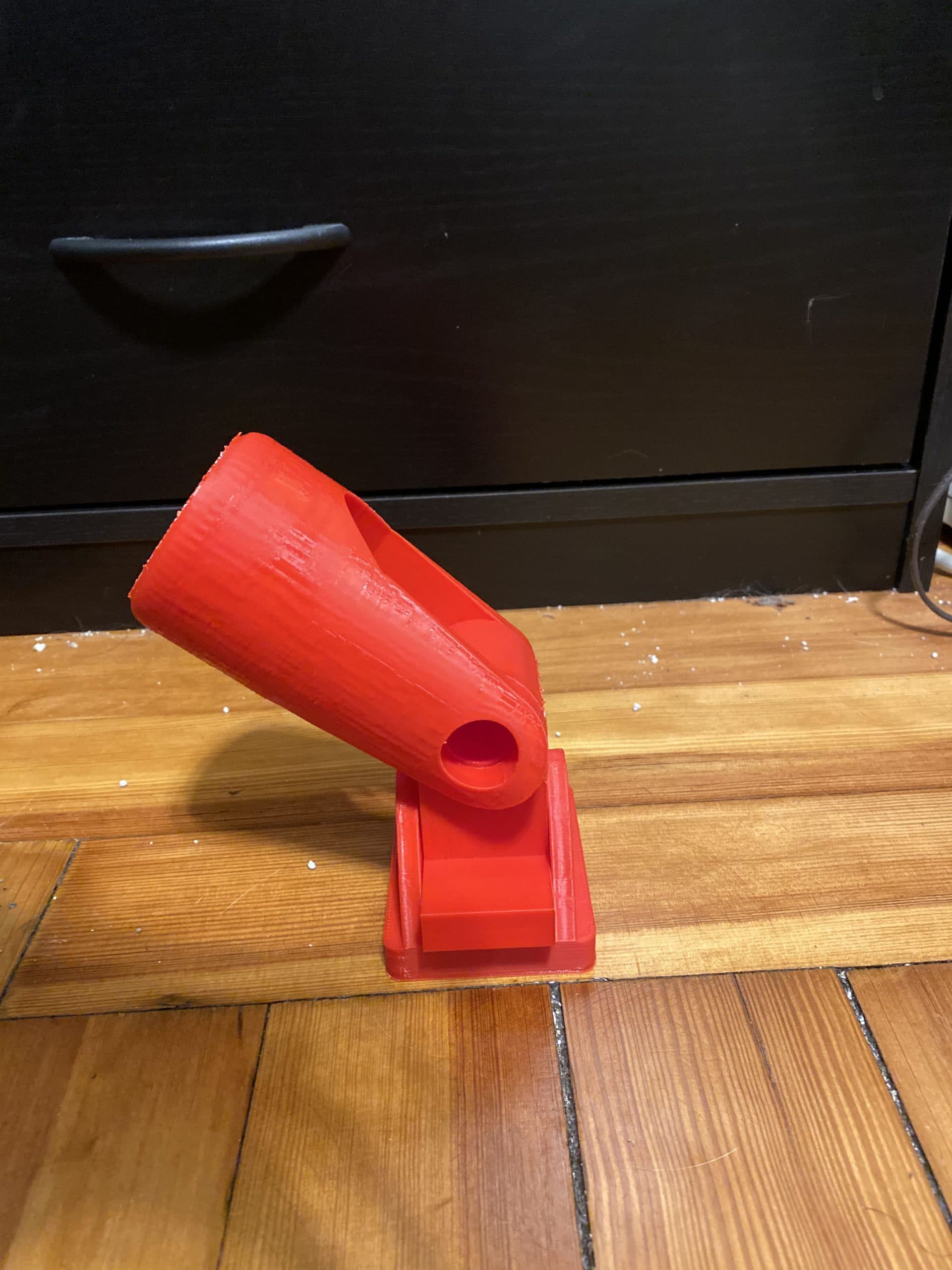 - I felt dissatisfied with the original version because it was too large, had too many complicated \”holes\” in the surface, and cracked due to printing tolerance and tube diameter. I consolidated features and revised the part to consolidate features and reduce the overall footprint: