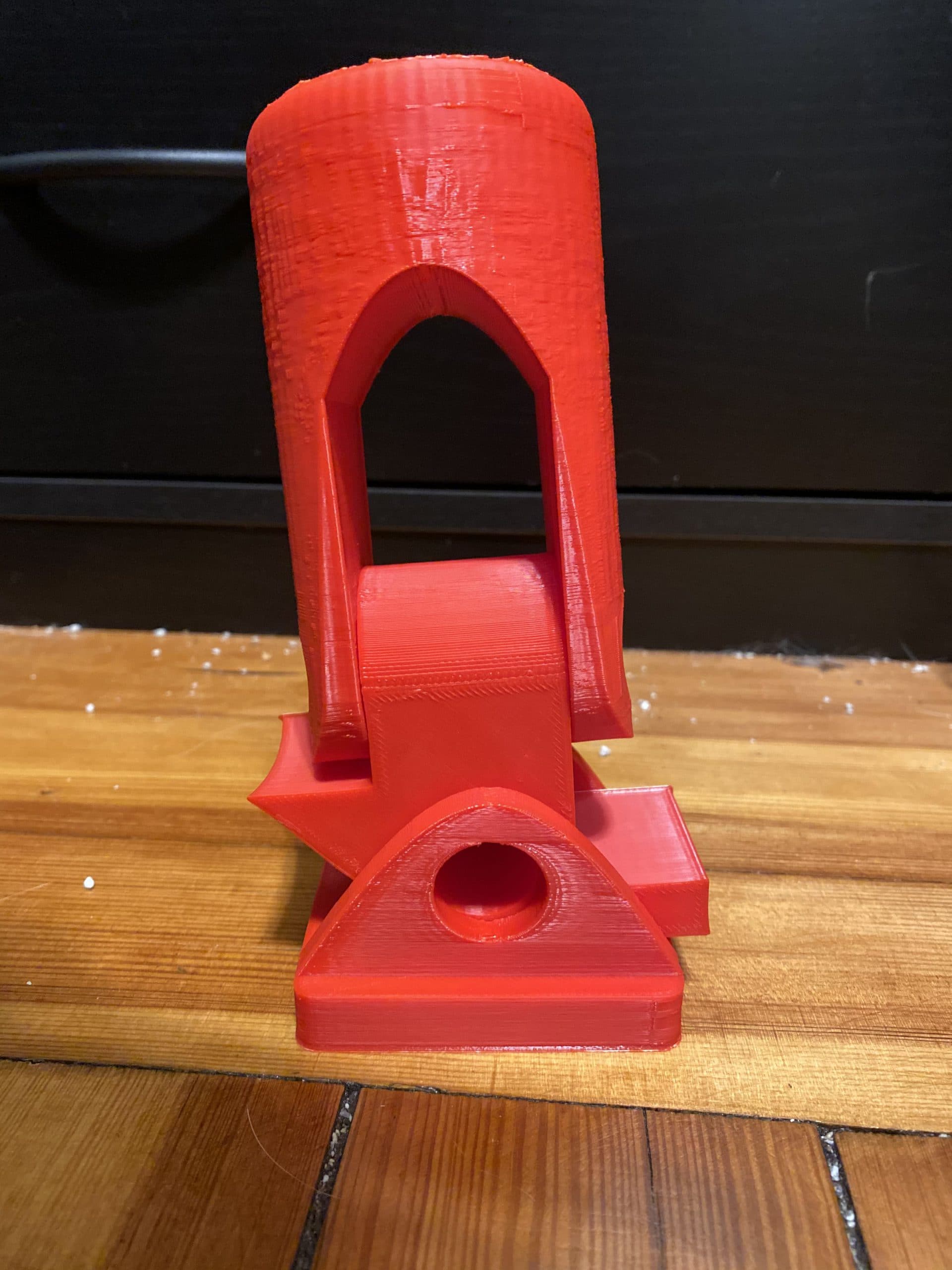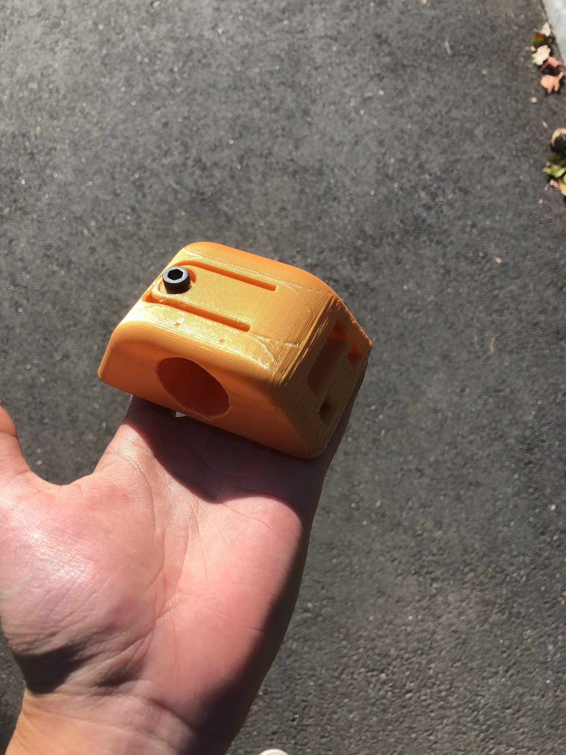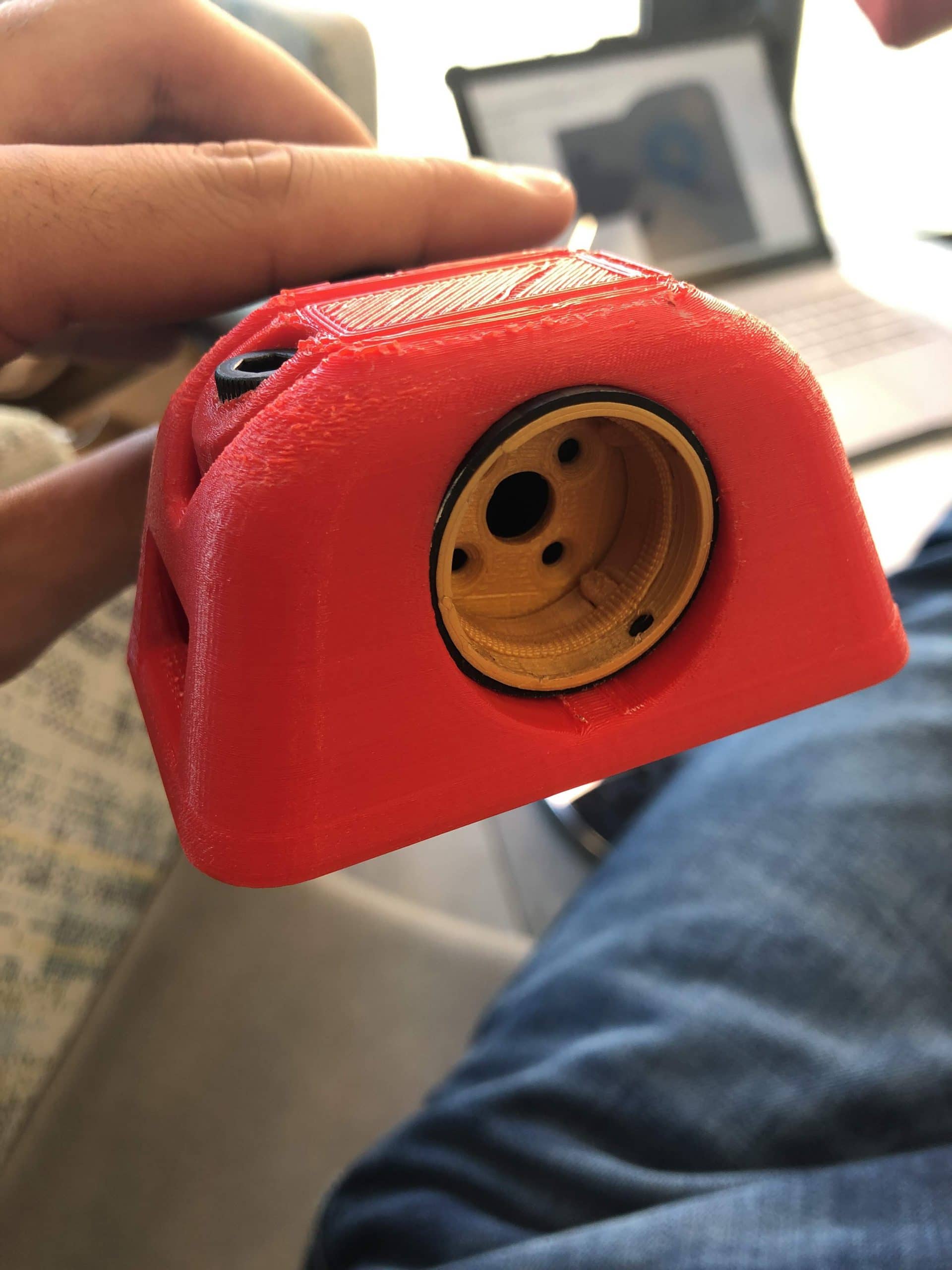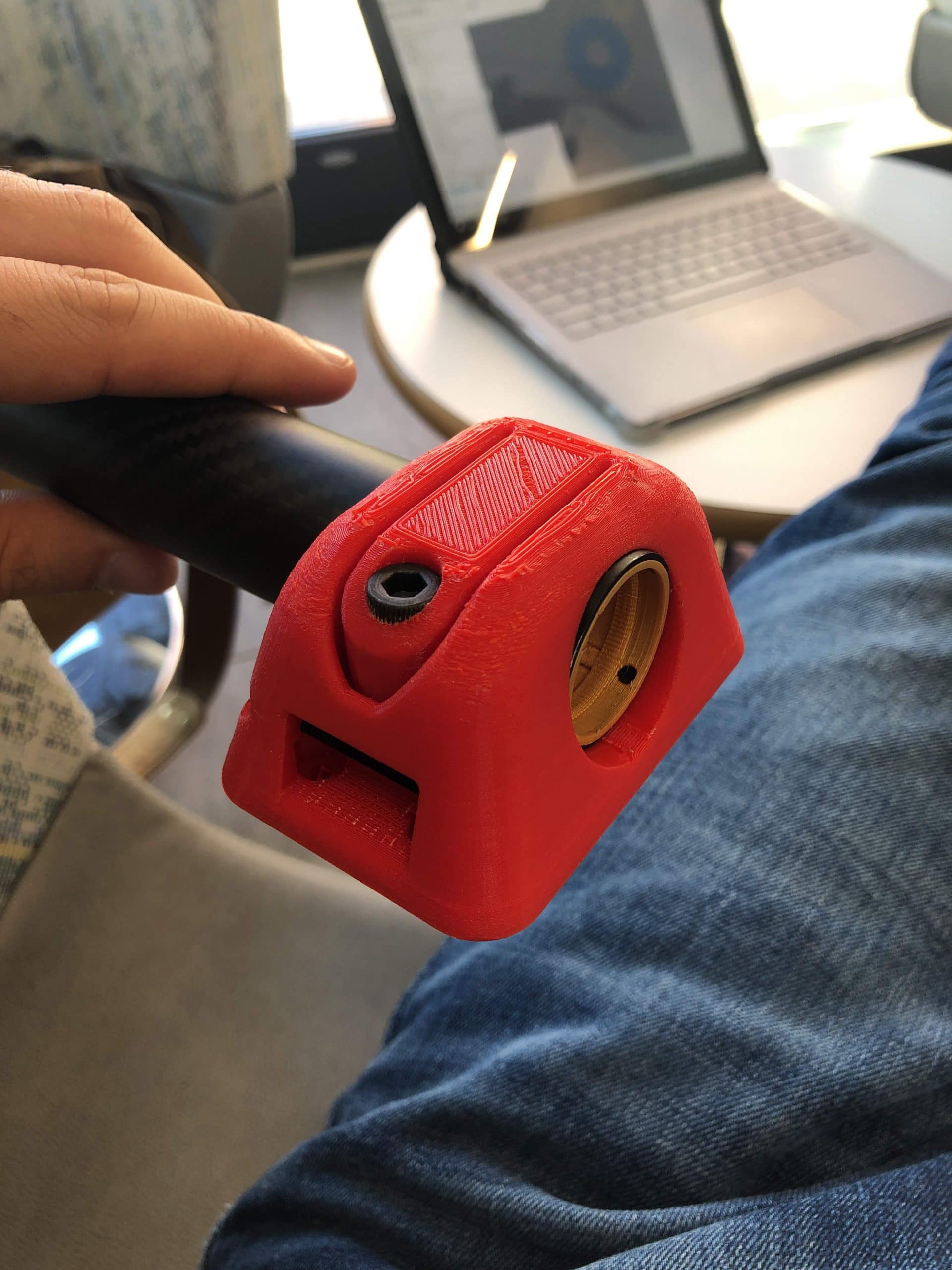 - I am dissatisfied with this version because it is too large, the surfaces have too many interruptions, and the body cracked due to printing tolerance and tube diameter. I plan to revise this part to consolidate unwieldy features and reduce the overall footprint.