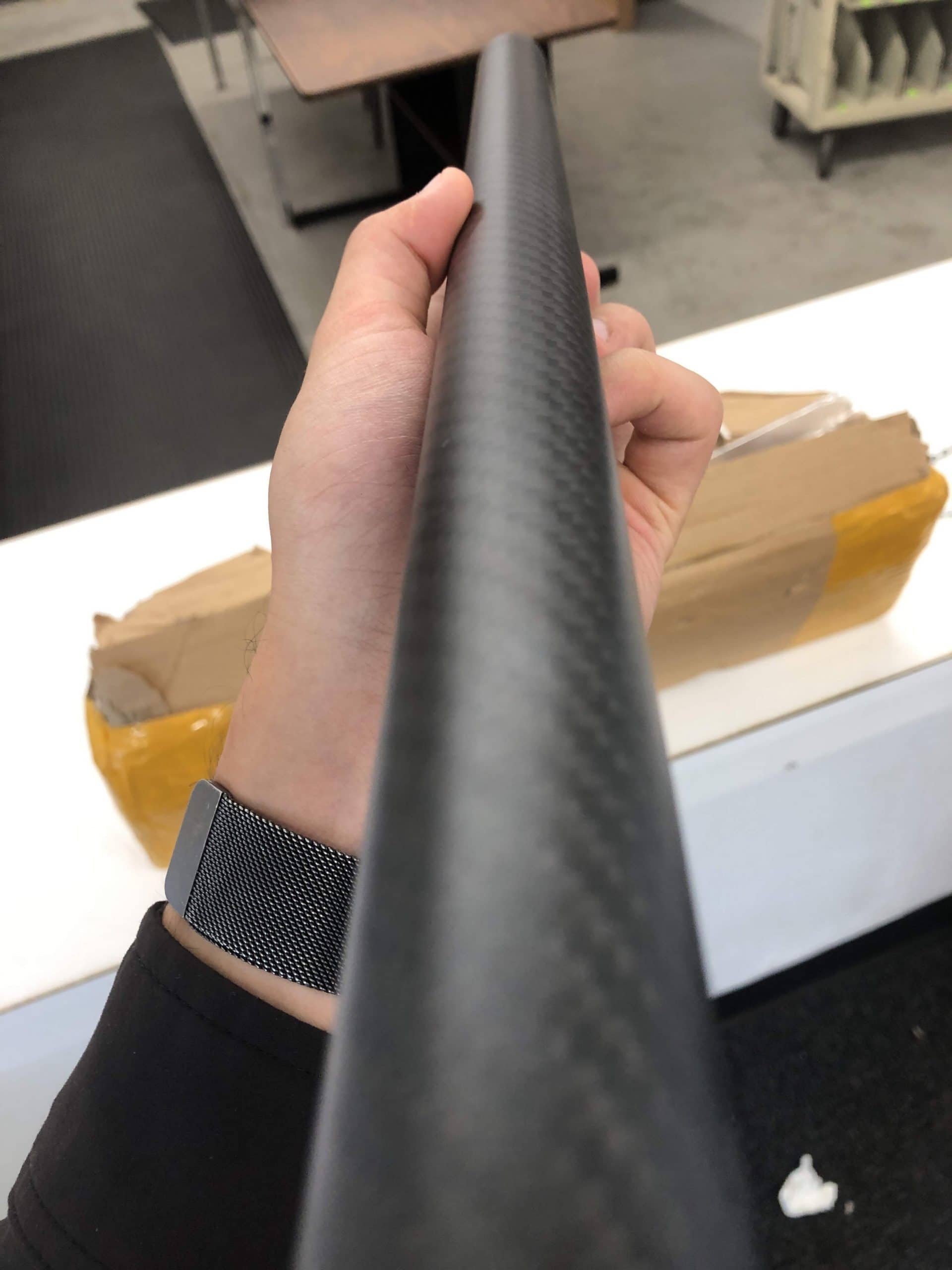 - Carbon fiber tube is 1.5x stronger than aluminum equivalent part and lighter. Need to meet with professor Zimmerman to evaluate broader use of composites.