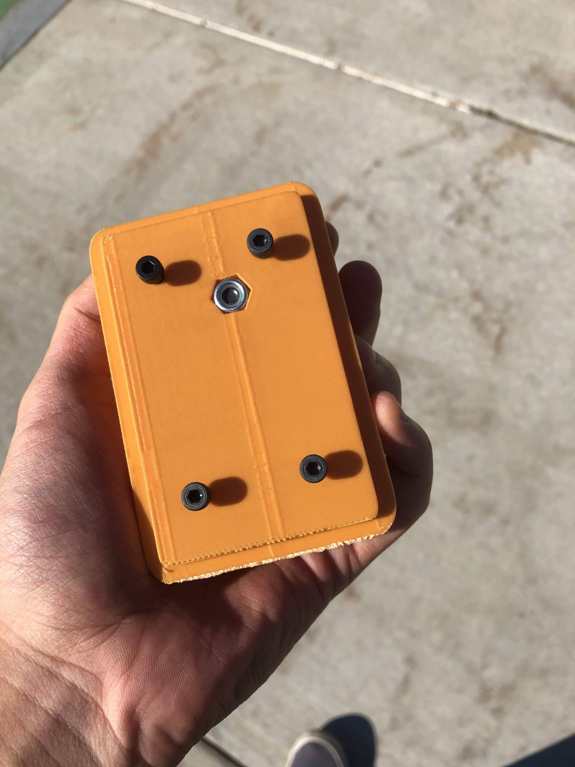 - Counter bore ANSI Metric M5 with Washer\r\nANSI metric M5 nut on backside rather than threading on part (because that’ll strip out easy) or insert (because it fatigues the material)
