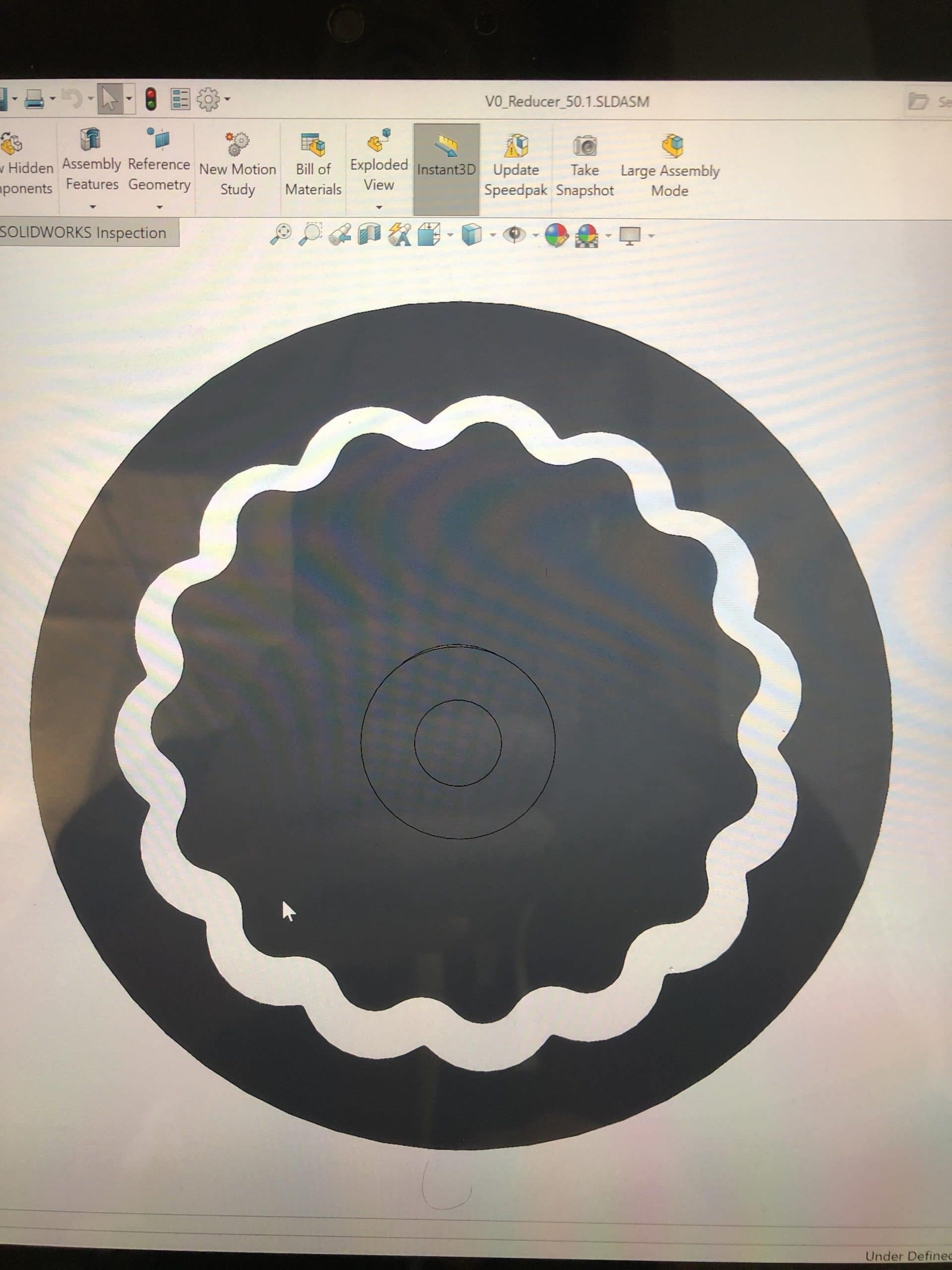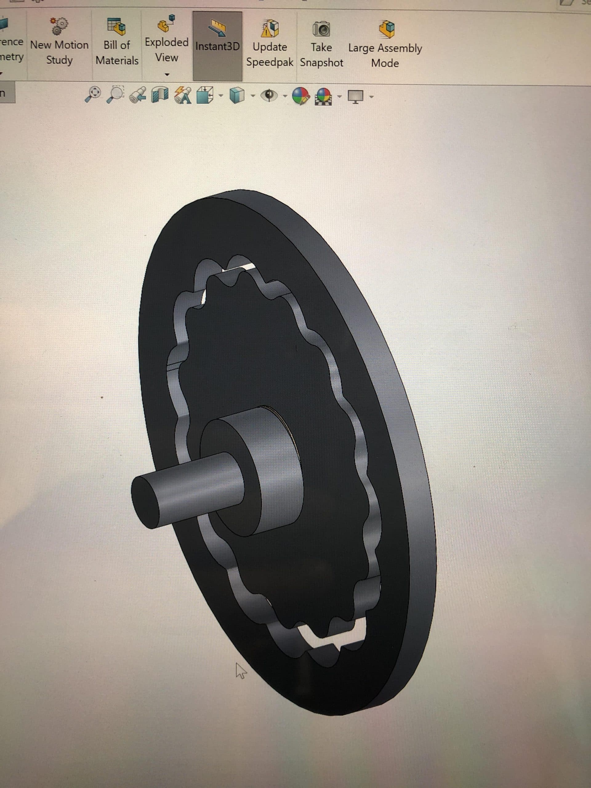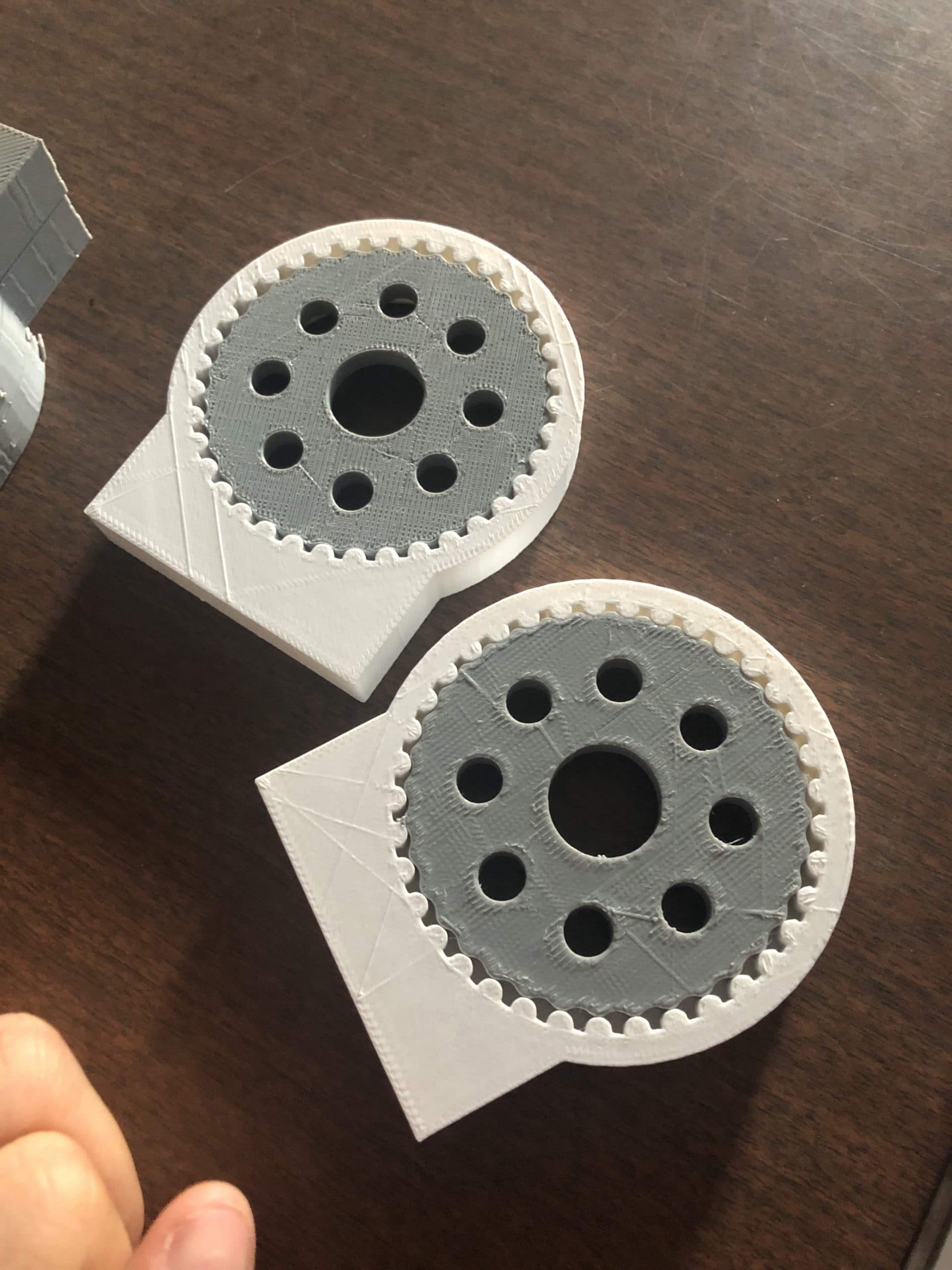- Placed output holes in line with the peaks or troughs of the gear for Top and bottom. This geometry was not fully constrained previously due to software limitations with equation drive splines.