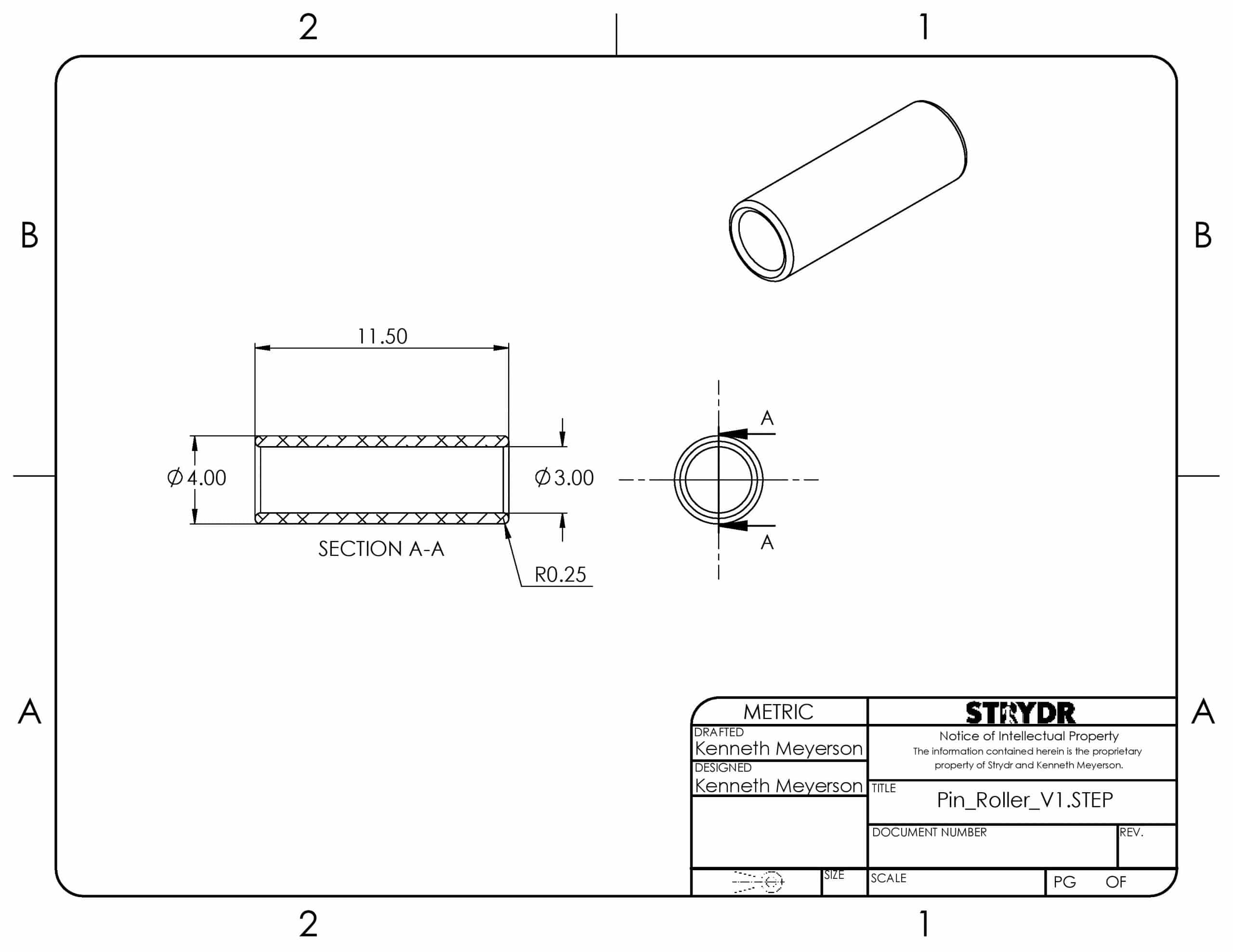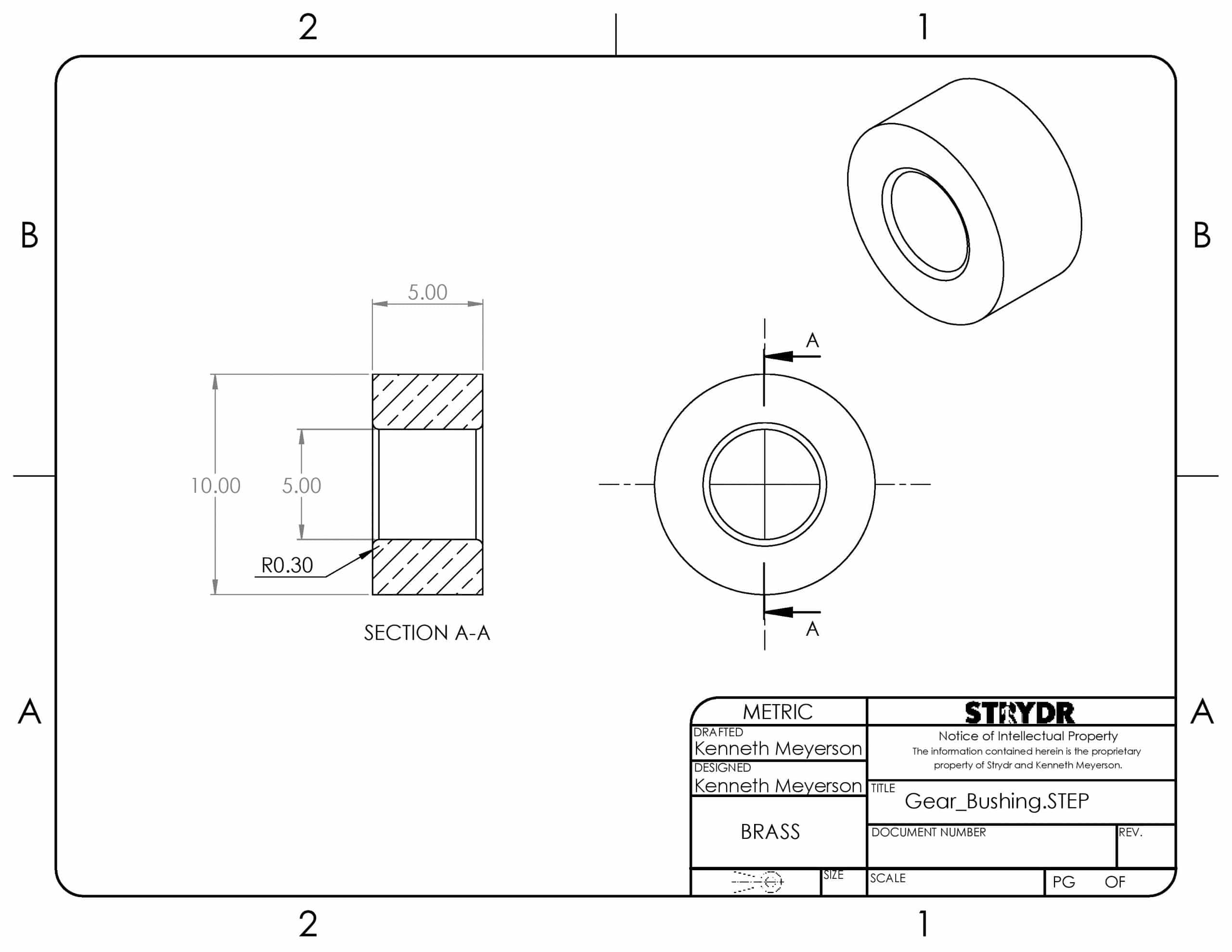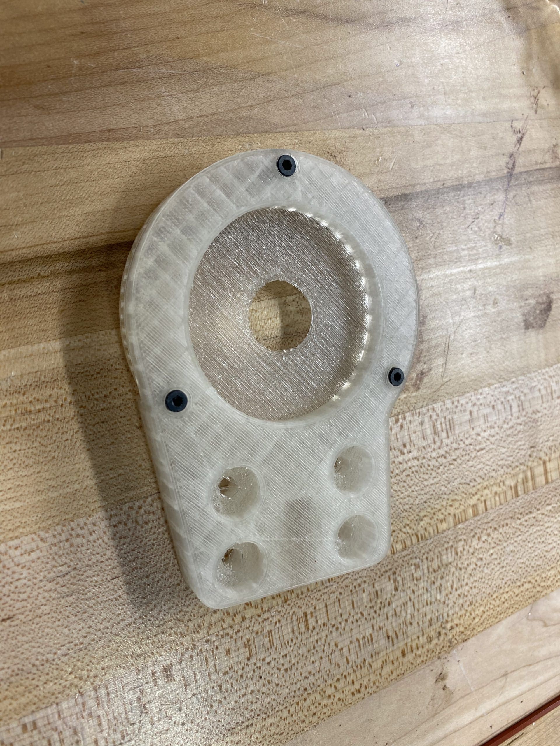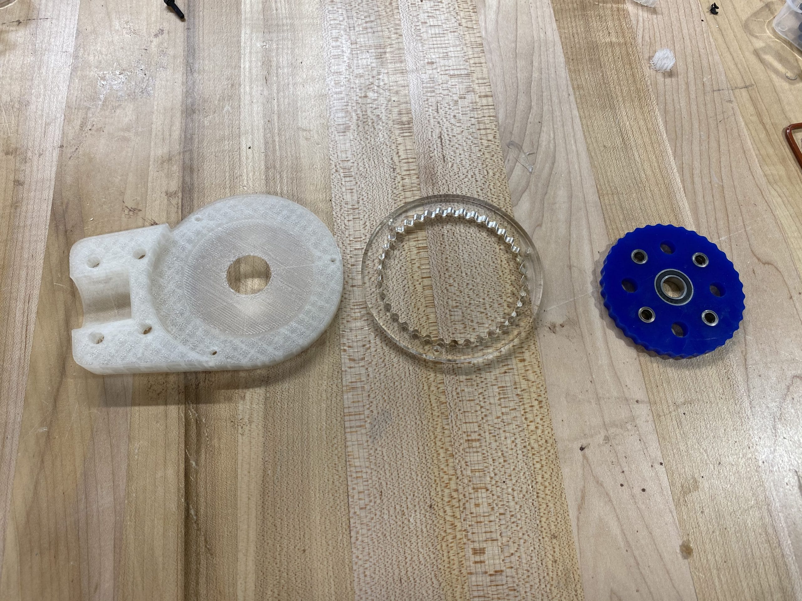 The major change incurred by the adaptation is the replacement of the previously laser cut outer gear rings with 37 independent support pins and rolling sleeves. This change eliminates the sliding friction with rolling friction to minimize fictional losses and maximize silence. Smaller changes replacing the small bearings connecting the gears with the output shaft with brass bushings. This minimizes the BOM cost, simplifies assembly, and improves durability.