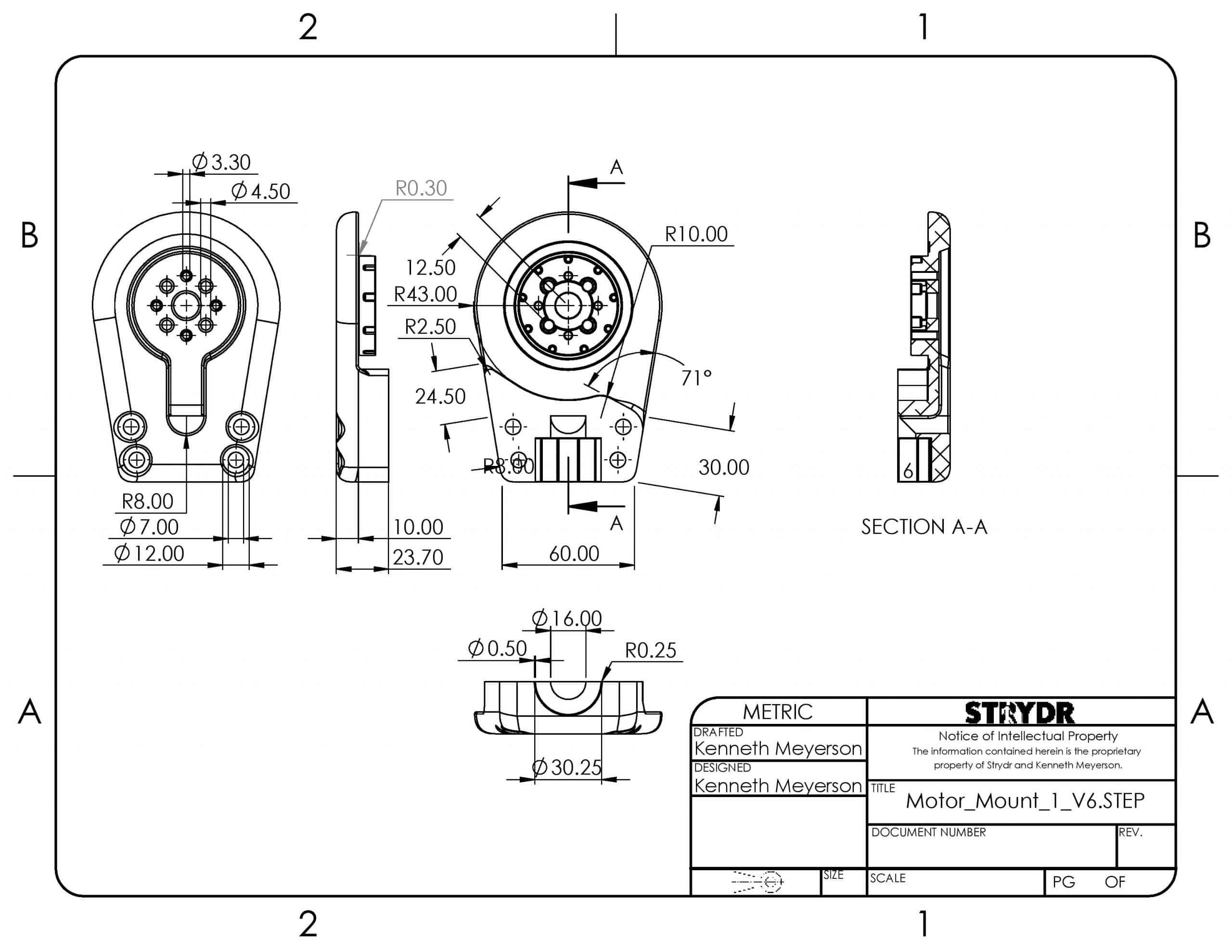Revision 6 of the StryDrive™ gearbox is an adaptation of the Revision 5 gearbox designed for easy CNC mental fabrication. This transition reduces the probability of prototype defects due associated material strength and deformation limitations of plastic 3D printing and acrylic laser cutting. Although the 3D printed and laser cut designs can be produced with 3-axis CNC milling, the assembly relies on self-tapping screws and other incompatible features.