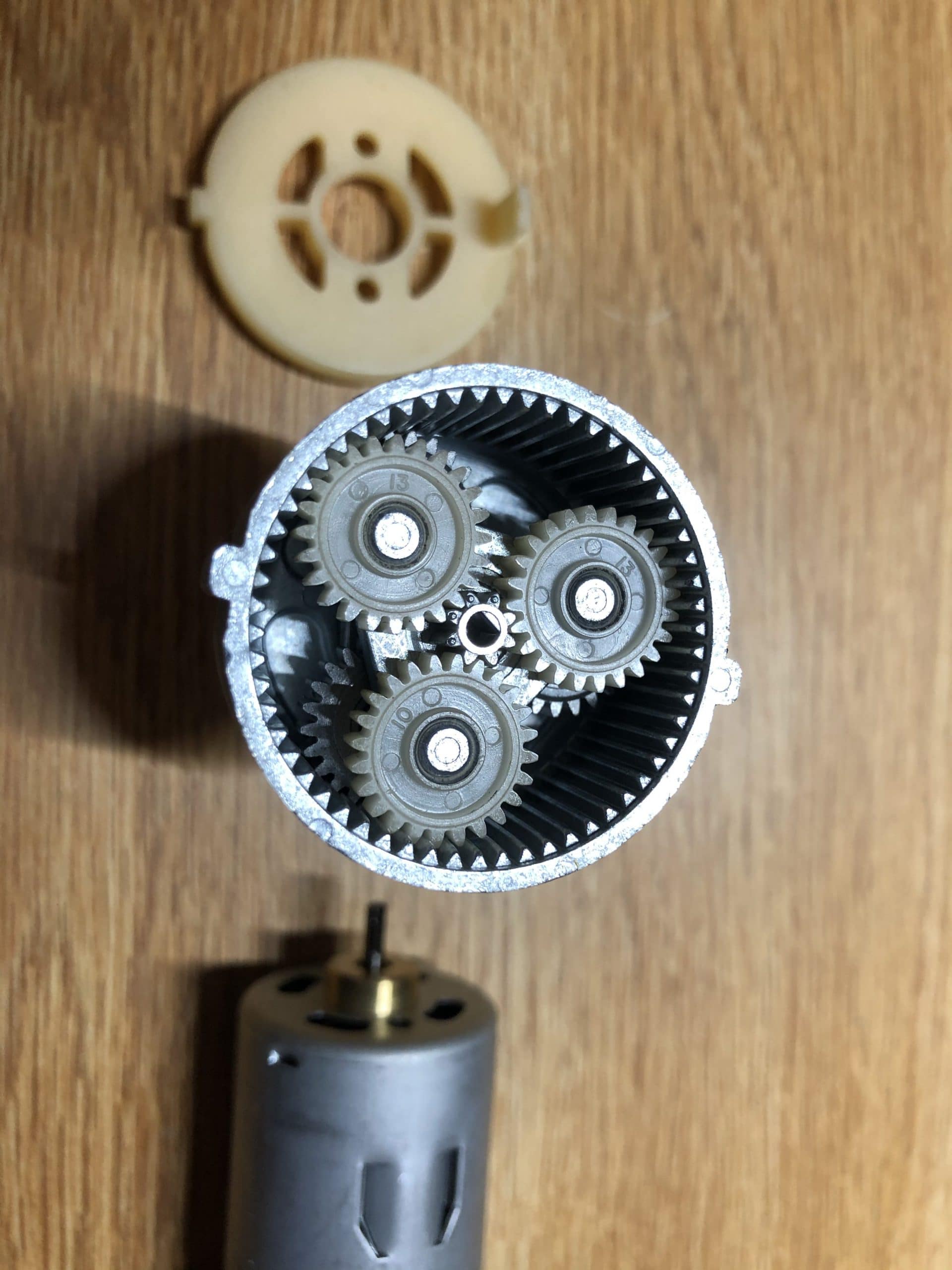 - The reverse engineering of the Skil Twist proved invaluable. Overall design simplicity and execution of the tool aside, the hybrid-material planetary gearbox has changed the direction of my actuator gearbox development. The pursuit of a small planetary gearbox and offset transmission gearbox solution for providing torque to the joint no longer seems practical for this application.Although the torque and noise generated by the 35mm OD gearbox and 28mm OD motor exceeded my expectations, back-drivability of the motor from the output shaft was limited. This is related to the high gearing ratio of the compound gearbox stage (3x Planets, 8T Sun, 25T Planet, 58T Ring, 1000:121). The reduction ratio can be modified to improve back-drivability at each stage, but implementing an easily back-driven system likely requires multiple sets and configurations of gears and parts that undermine modular design principles.This exploration has provided valuable insight into the direction of future gearbox development and has also provided a demonstration of “sensorless” torque and RPM approximation through current measurement and phase commutation properties.This prompted a directional change in the project to evaluate new actuator gearbox solutions. Harmonic Gear drives are common among several exoskeleton designs featured in a recent industry review, however their mechanism depends on the deformation of a consumable elastic part and is generally not a back-drivable solution.