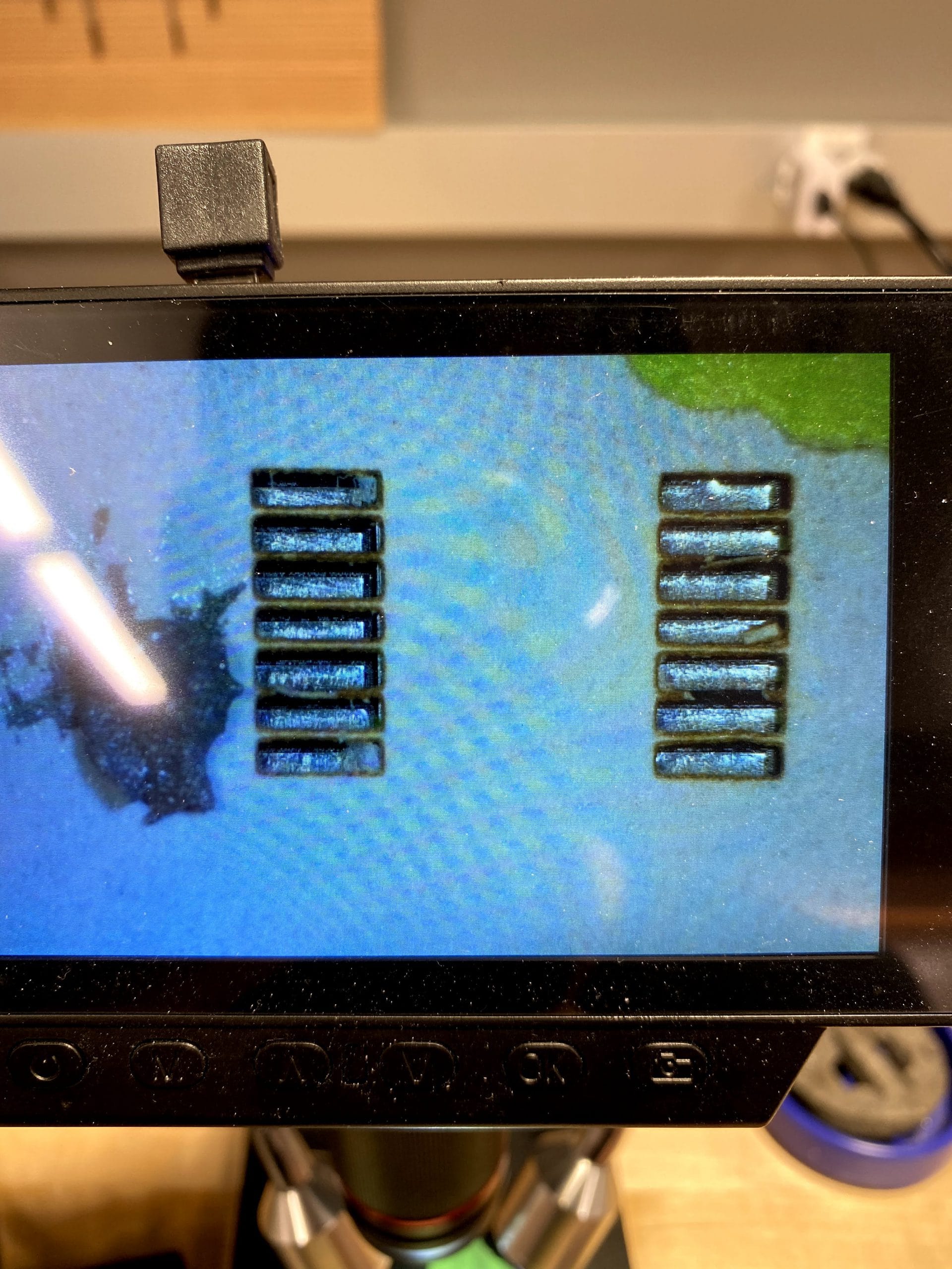 - Depth of cut reveals laser is not perpendicular to surface, resulting in CAM shaft misalignment. Discovered when replacing two separate outer gear disks with a single piece.